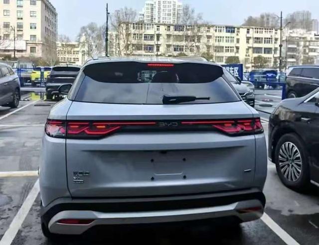 宋Ultra EV的尾部呈现出下宽上窄的造型,车顶末端设有扰流板和高位刹车灯,提供后雨刷,熏黑贯穿式尾灯内部应用到了中国结元素,中间还有可发光的BYD标识,而黑色后包围加入了银色护板,使该车更显厚重,此外尾门左侧可以看到“闪充”字样。