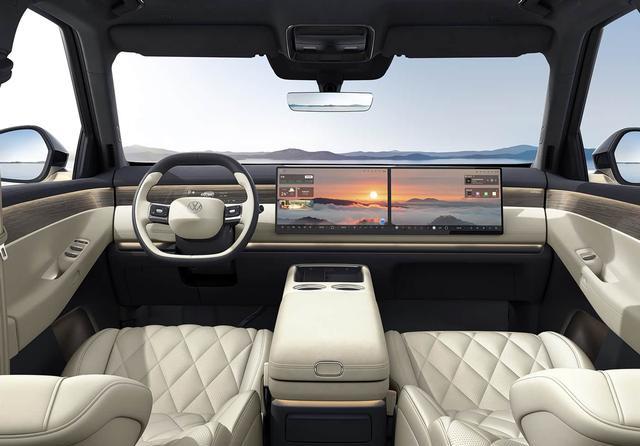先说智能化,中控台上放着一块大横屏,直接覆盖到副驾位置,和理想L系列类似,在新势力阵营不算罕见,但在合资阵营确实稀有。比较有意思的是它的仪表盘,不是传统的液晶屏幕,而是采用投影的形式,将行车信息显示在木纹饰板上,挺别致,不过背后的科技原理还有待进一步消息。另外,ID. ERA 9X将是首款搭载激光雷达的大众车型,方案合作方是Momenta,也算是老朋友了,上汽旗下的智己也是用的Momenta的方案,整体表现还不错。
